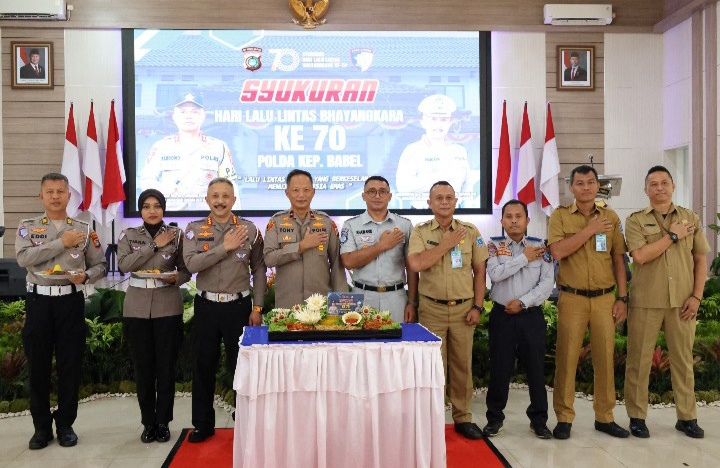 CyberTerkini.Com – Direktorat Lalu Lintas Polda Bangka Belitung menggelar syukuran dalam rangka Hari Lalu Lintas Bhayanhkara ke-70 di gedung Tribarata Mapolda, Senin (22/9/25).