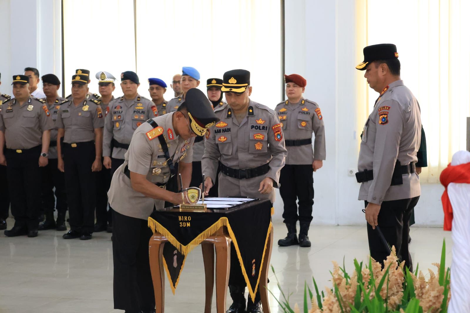 Adapun 9 PJU Polda yang melangsungkan sertijab diantaranya jabatan Karo SDM, Dir Narkoba, Dir Reskrimsus, Dir Pamobvit, Dir Polairud, Kabid Propam, Kabid Humas, Kabid TIK serta Kabid Keu.