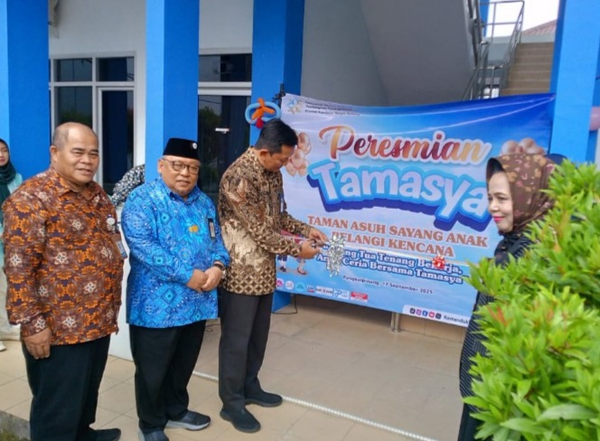 CyberTerkini.Com – Kementerian Kependudukan dan Pembangunan Keluarga BKKBN Perwakilan BKKBN Provinsi Kepulauan Bangka Belitung menggelar Peresmian Taman Asuh Sayang Anak (Tamasya) Pelangi Kencana dengan tema “Orang Tua Senang Bekerja, Anak Ceria Bersama Tamasya”, peresmian Tamasya Pelangi Kencana langsung diresmikan oleh Deputi Bidang Penggerakan dan Peran Serta Masyarakat Kementerian Kependudukan dan Pembangunan Keluarga BKKBN, Drs. Sukaryo Teguh Santoso, M.PD, Rabu (17/09/25).