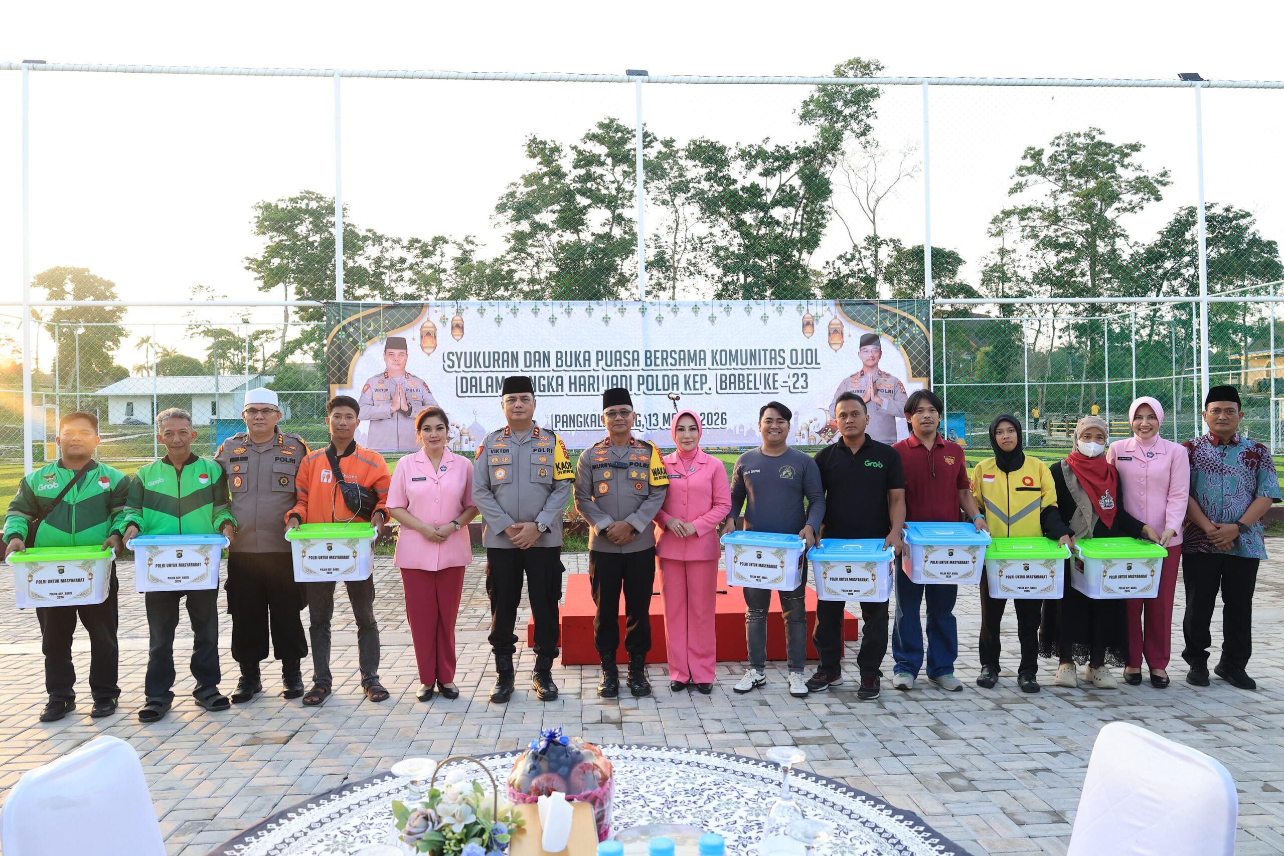 Cyber – Polda Bangka Belitung menggelar buka bersama dengan komunitas pengemudi ojek online Pangkalpinang, Jumat (13/3/26). Momen itu juga berbarengan dengan syukuran Hari Jadi Polda Babel ke 23 tahun.
