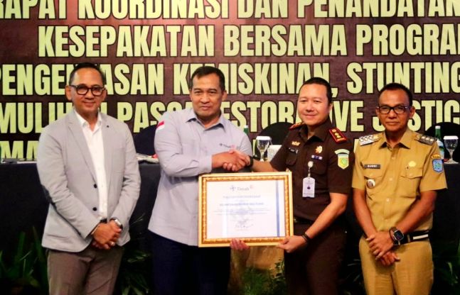 Penghargaan ini diserahkan oleh Direktur Utama PT TIMAH Tbk Restu Widiyantoro kepada Kepala Kejaksaan Negeri Belitung Bagus Nur Jakfar Adiputro yang turut disaksikan oleh Kepala Kejaksaan Tinggi Provinsi Kepulauan Bangka Belitung Bapak Sila Haholongan dan Bupati Kabupaten Belitung Djoni Alamsyah dalam kegiatan ‘Rapat Koordinasi dan Penandatanganan Kesepakatan Bersama Program Pengentasan Kemiskinan, Stunting, dan Pemulihan Pascarestorative Justice serta Human Trafficking di Kabupaten Belitung’ yang berlangsung di Hotel Golden Tulip, Senin (29/12/2025).