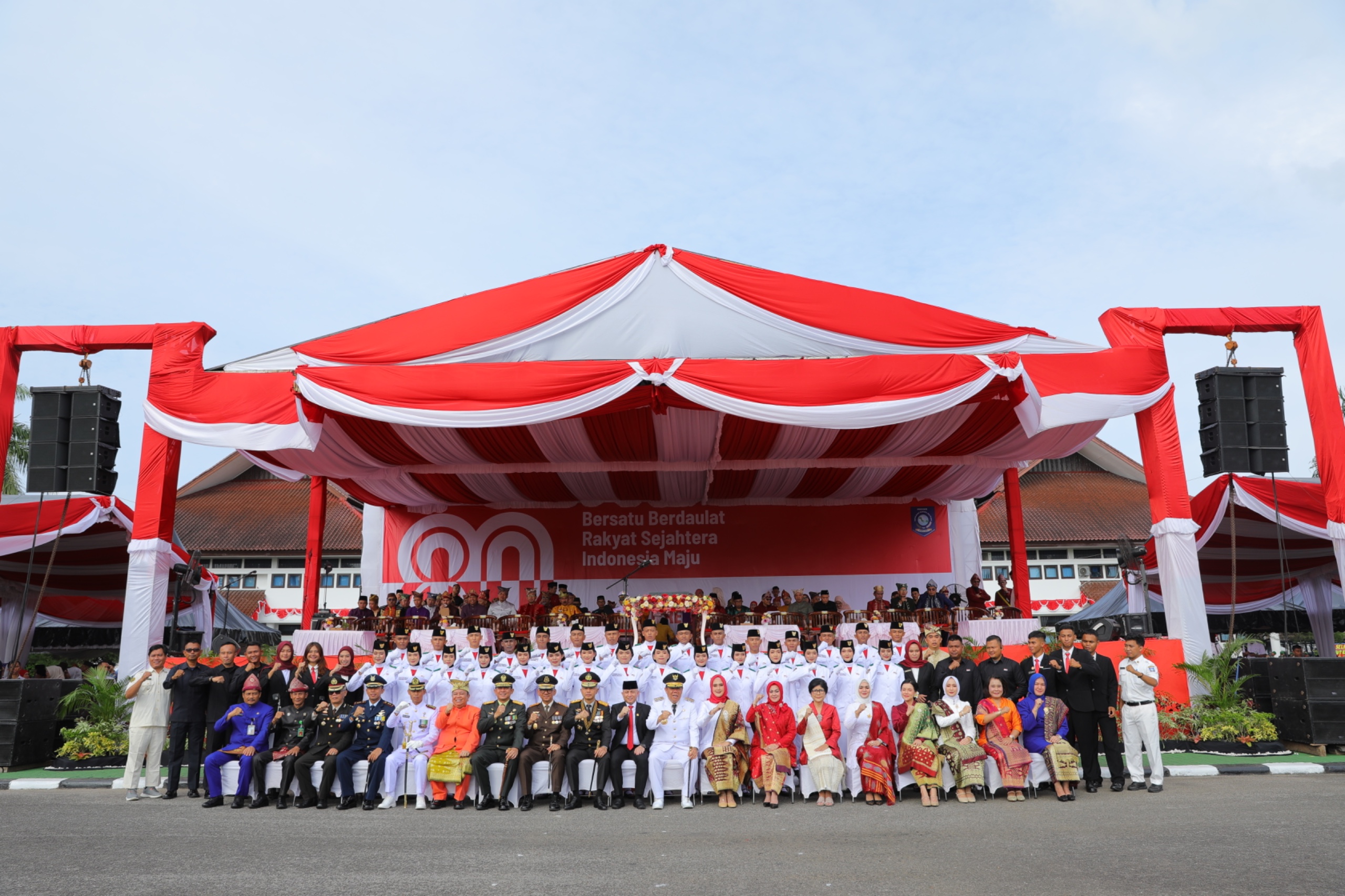 Momen bersejarah terasa ketika pasukan Paskibraka berhasil mengibarkan Sang Merah Putih dengan sempurna. Gubernur Hidayat Arsani bahkan turun langsung dari mimbar kehormatan sebelum kembali ke tempat duduknya untuk menghampiri Komandan Upacara sebagai bentuk penghargaan atas suksesnya pelaksanaan upacara.